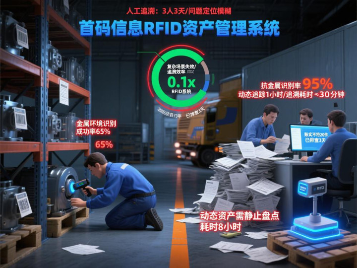 RFID 系统则适配多种复杂场景:抗金属标签可在金属表面稳定识别,成功率超 95%;非接触读取特性,无需移动隐蔽位置资产即可识别;固定式阅读器还能对动态资产实时追踪。某物流仓库用传统方式盘点运输中的 500 个托盘,需等托盘卸车后逐一扫码,耗时 8 小时;用 RFID 固定式阅读器,托盘在运输过程中即可完成识别,耗时 1 小时(来源:《物流技术与应用》2023 年第 6 期《物流资产盘点场景对比》)。传统方式的 “环境依赖”,使其在复杂场景中难以高效应用,甚至需暂停正常运营配合盘点。